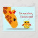 Gran jirafa olé y su pequeña lechuza en esta divertida postal que dice: "No soy corta, ¡soy divertida!". Perfecto para cualquier amigo con problemas verticales en su lista!