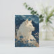 This striking postcard features a majestic white wolf in profile, gazing across a vast and rugged wilderness. The artwork is characterized by clean, detailed linework and a sophisticated palette of cream, navy blue, and slate grey. The wolf sits among tall, golden wheat-like stalks and clusters of deep blue and white wildflowers, while jagged, snow-dusted mountain peaks rise sharply under a clear, star-studded midnight sky. The composition combines an illustrative, modern feel with a serene and powerful natural vibe. As a postcard, it is perfect for sending a meaningful note, a unique greeting to an outdoors enthusiast, or for use as a beautiful piece of miniature mountain-themed decor.