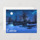 Postal Noche de invierno mágica con cielo estrellado y lu