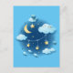 Paisaje nocturno con estrellas colgantes y peces voladores, arte digital