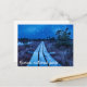 Vista panorámica de la ciudad de bog por la noche con sendero de madera, pequeños estanques y pinos. Camino de senderismo con pasarela de madera que atraviesa el pantano contra luna llena y cielo nocturno con estrellas