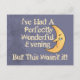 "He tenido una velada maravillosa - ¡pero no fue eso!" Un dicho gracioso adornado con un aspecto miserable de media luna.