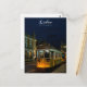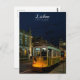 Foto de arte de viajes de la ciudad de Lisboa, con el icónico tren eléctrico (localmente llamado: Electrico) por la noche en Terreiro do Paco. Lisboa, Portugal