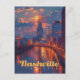 Captura la magia de Nashville después de la noche con esta impresionante postal que presenta el icónico paisaje de la ciudad reflejado en el río Cumberland. Ideal para los amantes de la música y los viajeros.