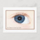 Una postal de recordatorio de examen ocular con una fotografía de un hermoso ojo azul. Texto completo del personalizable con un lugar para el nombre de la clínica, dirección, teléfono, fecha y hora de la cita, y un mensaje del personalizado. Perfecto para uso por optometrista u oftalmólogo para una cita para un examen visual para el cuidado de los ojos y los ojos.
