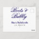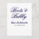 Postal nombre de despedida de soltera Boots & Bubble purp
