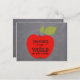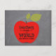 Gran manzana roja con una cuidadosa tipografía cita dentro de la pizarra de fondo haciendo un profesor personalizado gracias a dar regalos de expresión. ¡Rellene su texto y firma en la parte posterior de la postal!