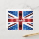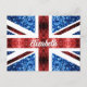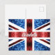 Personaliza tarjeta con brillos con tu nombre. Tarjeta con brillos de la bandera del Reino Unido en rojo y azul. Usamos foto de brillos y no brillos reales.
