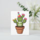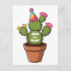 Postal nopal de cactus en maceta con sombrero de cumpleañ