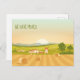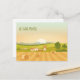 Personalice estas lindas tarjetas postales de cambio de dirección con la información de su nueva casa en la parte posterior. Nuestra familia se ha mudado a una nueva casa de campo en el campo. Nos hemos mudado está escrito en verde bonito encima de una hermosa salida del sol y un campo rural con pacas de heno.