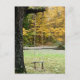 La vieja oscilación de árboles abandonada en la postal de otoño.