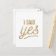 Regale esta glamorosa apariencia de Relieve metalizado dorado "dije que sí" tipografía regalo a la novia para ser que sepa quién se va a casar pronto. Esto haría una gran ducha de novia o soltera, cuando regalo fiesta. Puede agregar texto personalizado para crear un regalo de mantenimiento único. Diviértete, señoras.