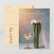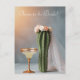 Agrega un toque divertido y caprichoso a tu celebración nupcial con esta tarjeta postal única de novia cactus. Con un cactus vestido con un velo y una corona floral junto a una copa de margarita brillante, esta tarjeta es perfecta para invitaciones a fiestas de despedida de soltera, anuncios de ducha nupcial o un recuerdo alegre de la boda. ¡Una elección linda y extravagante para bodas con tema de desierto o suroeste!