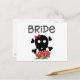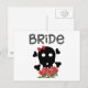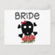 Diseño de novias esqueléticas de Guay para novias de cadera, novias góticas o novias de Halloween. Este cráneo tiene un arco rojo y flores rojas y la palabra novia en blanco y negro.