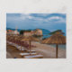 Nubes de tormenta se congregan sobre Budva, una ciudad de Montenegro, en el mar Adriático. La playa de esta fotografía se encuentra al lado del Stari Grad o del casco antiguo. Esta postal es totalmente personalizable.
