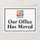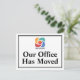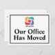 Tenemos una nueva postal de domiciliación móvil para una empresa de negocios o moda moderna que busca actualizar a sus clientes en una nueva ubicación. Nuestra oficina se ha mudado. Un sencillo cambio de la compañía de las tarjetas de dirección con el logotipo corporativo de su personalizado. Personalizar el cambio de dirección en la parte posterior.