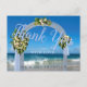 Tarjeta de agradecimiento de boda en la playa decorada con ramos de rosas florabunda