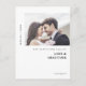 Moderno y moda "Nuestros corazones están llenos de amor y gratitud" foto boda gracias postal. El diseño presenta tipografía moderna y espacio para una imagen boda horizontal. En el reverso, el diseño incluye opciones para obtener más detalles de personalizable. Personalice el diseño reemplazando el texto de ejemplo y la foto.