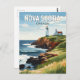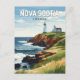 Diseño de viaje vectorial retro de Nueva Escocia. Nueva Escocia está casi totalmente rodeada de agua y alberga más de 13.000 km de costa, miles de lagos, exuberantes valles, cuatro lugares declarados Patrimonio de la Humanidad por la UNESCO, las mareas y ballenas más altas del mundo.
