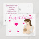 ¡Celebra la maternidad con esta encantadora postal! El frente muestra a una madre y un bebé con corazones rosados y "Felicitaciones". La parte posterior presenta un mensaje sincero, convirtiéndolo en un regalo perfecto para las nuevas mamás.
