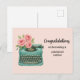 Presente sus felicitaciones a un nuevo autor con esta plantilla de tarjeta postal personalizable. El diseño presenta una máquina de escribir vintage de acuarela adornada con rosas rosadas. Personalice el saludo o compre tal como está para transmitir sus mejores deseos con motivo de su logro editorial. Esta tarjeta postal simple pero elegante, inspirada en el vintage, seguramente será apreciada por el destinatario. (Arte de IA por Susang6)
