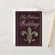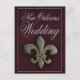 Fleur-De-Lis en chispa dorada con fondo rojo oscuro y Boda en New Orelans con letra de escritura plateada. Perfecto para la novia y el novio de los New Orelans. ¡Muestra tus invitaciones con estilo!