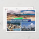 Viajes y PostCard Aquí es el recuerdo de sus vacaciones en Nueva Zelanda. Esta imagen contiene una representación de los siguientes lugares: Los lagos Esmeraldas, Monte Tongariro - Wellington - Auckland. Impresione a los amigos y a la familia con recuerdos únicos del gran viaje. Pruébenos.