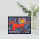 Este diseño de postales con grafitis de arte fino y totalmente personalizable de Santa Fe cuenta con un perro del Diablo del tigre de Tasmania, de temática española, con dos caras de gato de ojos verdes. La inspiración de esta obra de arte es el pintor latinoamericano Tamayo. El fiero naranja y el perro tipo tigre salvaje a rayas amarillas del tipo de los tigres de Tasmania se asemeja ligeramente a uno de los famosos temas abstractos de pintura canina de Tamayo; he agregado la cara de un hombre dorado macho bigotudo con un halo resplandeciente y motivos inspirados en los nativos americanos del suroeste. El título: !Nortenos! !Surenos! !Simon! deriva del popular cholo hispano, homie y jerga chicana en partes de México y el suroeste estadounidense. Este artista soy yo: Peter Gumaer Ogden. El medio que usé es el collage, la pluma, la tinta y la pintura acrílica sobre el papel. Creé esta pintura en 2007 cuando vivía en los Apartamentos Sangre de Cristo en un auténtico barrio de Santa Fe, Nuevo México. Reformulé este diseño en 2021.