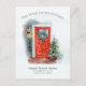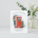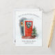 El cambio de dirección de los partidos temáticos en el diseño de la postal incluye una puerta roja festiva decorada con una corona de feriado. El diseño acuático se acentúa con una lámpara brillante y un árbol de Navidad. La invitación de cambio de dirección dice "Nuevo hogar para las vacaciones" y su nueva dirección en el frente. El otro lado deja espacio para que dirijas las tarjetas a amigos y familiares. #NewHome #HomeForTheHolidays #AddressChange