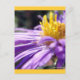 Macrofoto, flor de astro, postal, orientación vertical, borde naranja/amarillo superior e inferior