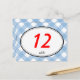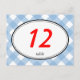Postal Número de mesa de boda rústico de gingham azul