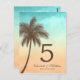Postal Número de tabla de Boda de palmeras de playa tropi