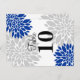 © 2013 Socialite Designs. Nuestra elegante tarjeta de número de tabla de diseño de ráfagas florales tiene colores de azul real y gris plateado con texto negro. Puede mantener estas tarjetas numéricas como de doble cara o borrar el texto de atrás y sólo tener la parte delantera con el número de tabla. Todos los elementos de diseño se pueden mover, cambiar de tamaño o eliminar para que se ajusten a su evento. Si necesita ayuda para personalizar este número de tabla, no dude en ponerse en contacto conmigo.
