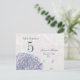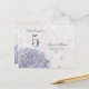Esta tarjeta postal con número de mesa Boda dulce tiene un azul cobalto oscuro, azul perwinkle suave y ramo floral lila suave hidrato púrpura en la parte inferior izquierda con algunos pétalos volando a la derecha. En el fondo, hay un patrón de damasco descolorido y un gráfico de rayas. En la parte superior, se puede personalizar fácilmente el número de la mesa junto con los nombres de la novia y el novio y la fecha de la ceremonia del boda. Esto sería genial para un boda de primavera o verano.