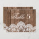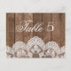 Postal Número de tabla Rústico de Boda de encaje blanco y