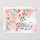 La cita inspiradora de las escrituras de la postal de cumpleaños representa una hermosa acuarela floral que incluye elegantes flores rosadas y vegetación. En la parte trasera aparece la Biblia Verse Números 6:24-26: "El Señor te bendiga y te guarda; el Señor te resplandece la cara y sé amable contigo. El Señor te vuelve la cara y te da paz".