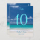 Tarjetas numero de tabla de bodas de la playa azul con texto de personalizable