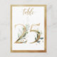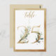 Hermosa tarjeta de número de mesa con un motivo botánico - un ilustracion acuarela de vegetación y números de efecto dorado. Cuadro 25. Compruebe todos los números disponibles