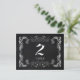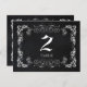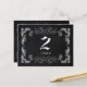 Elegantes y elegantes remolinos ornamentados con fondo blanco + negro diseñados sobre tarjetas postales de número de mesa de boda personalizadas. (En esta tienda, Bridal Heaven, se pueden encontrar los bodas esenciales y los favores correspondientes. Póngase en contacto con ujean4791@gmail.com para obtener información sobre el trabajo de los personalizados y/o la documentación de los bodas.))