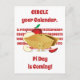 Una postal del Día del Pi con un sonriente ilustracion de personalizado pastel de manzana casi completo. Los números para Pi son visibles para varios decimales. Esta postal le permite a todos saber que el Día del Pi viene. Dé tiempo a la gente para tomar su calculadora favorita, comprar algo de harina extra y elegir la receta de pastel perfecta.
