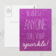 Esta postal edificante con la frase 'Nunca dejes que nadie te escuche el brillo' en un fondo purpurina morado es perfecta para enviarle a un amigo.