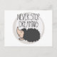 Postal de color azul claro sobre fondo blanco con un personalizado de cabeza de mano plana y cita inspiradora y motivacional Nunca dejes de soñar en un marco azul claro circular. | Bigstock® - Todos los derechos reservados.