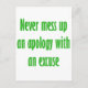 Si crees en no poner excusas, entonces te encantará este artículo. Dice "Nunca estropee una disculpa con una excusa". ¡Una buena cita inspiradora sobre no poner excusas!