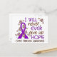 Deslumbra un camino morado de conciencia de la Fibrosis Quística mientras comparte un sentimiento inspirador de esperanza con camisetas, ropa, botones y mercadería de Nunca Abandonaré la Esperanza, con fuentes de texto contrastantes y un llamativo soporte de fibrosis quística morada entrelazado con delgadas flores moradas y chocolate.