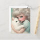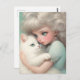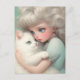 "Nunca sin ti" Una dulce postal de un amante del gato, abrazando a su gato peludo blanco con mucha ternura. Los colores son pastel. Esta obra representa un bello momento de amor.