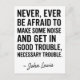 Envía el coraje y la convicción de John Lewis con esta inspiradora camiseta "Nunca tengas miedo de meterte en buenos problemas". Con su poderosa cita en la tipografía audaz y moderna, este diseño celebra el espíritu del activismo, la resiliencia y la defensa de lo que es correcto. Perfecto para quienes creen en hacer la diferencia, esta camisa es una manera significativa de honrar el legado de un ícono de derechos civiles y recordar al mundo que los problemas necesarios pueden cambiar la historia.