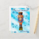 Un petardo alemán tradicional que representa a un militar con uniforme azul y naranja. El petardo es superpuesto en una imagen de fondo azul con copos de nieve. También aparece un texto que dice "Feliz Navidad". Añade tu propio texto adicional.