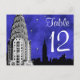 Silhouette Skyline de NYC con edificio Chrysler, Colección de fondo azul Starry - Tarjeta postal de número de mesa ============== Invitaciones de Personalizable y accesorios con una silueta del perfil de la ciudad de Nueva York que incluye el ESB y un edificio grabado de Chrysler en primer plano. También cuentan con un fondo de noche estrellado azul con estrellas blancas. Este producto forma parte de un conjunto de diseños de correspondencia que son de fácil personalizable para muchas ocasiones y eventos. Si necesita tarjetas RSVP separadas que coincidan, notas de agradecimiento, sellos, imanes u otros accesorios, por favor revise nuestros otros listados. Todos los derechos reservados
