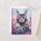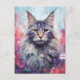 Coloridas acuarelas de un Maine Coon sentado en un campo de flores de primavera.