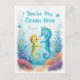 Esta colorida tarjeta con temática de caballito de mar celebra a los padres con grandes corazones—perfecta para los amantes del mar y singulares sentimientos por el Día del Padre.